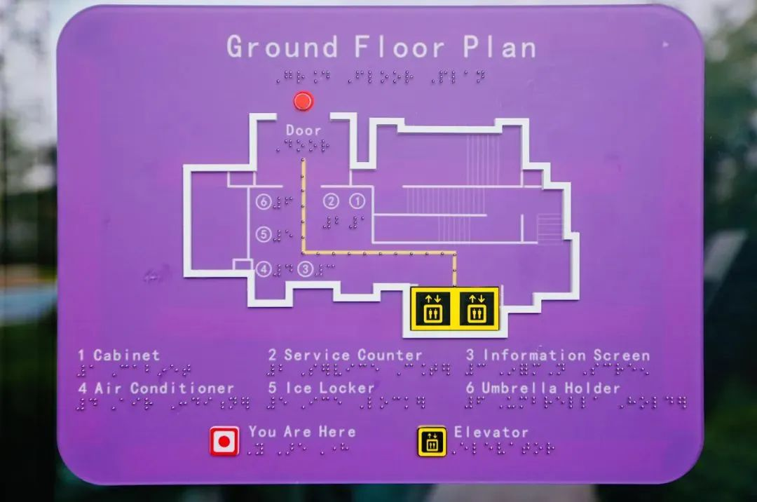 杭州亞殘運(yùn)村中還有超多無(wú)障礙設(shè)施和環(huán)境細(xì)節(jié)。盲道一直鋪設(shè)到公寓口,公寓入口的指示標(biāo)識(shí)處就有盲文,電梯的所有按鈕也設(shè)置了盲文。
