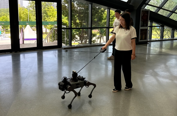 在拱墅運(yùn)河體育公園體育場(chǎng),正式比賽期間可以在場(chǎng)館內(nèi)看到兩名特殊“志愿者”——“電子導(dǎo)盲犬”小西和小湖。它們由西湖大學(xué)機(jī)器智能實(shí)驗(yàn)室研發(fā),主要為場(chǎng)館內(nèi)的視障群體提供導(dǎo)航服務(wù)。