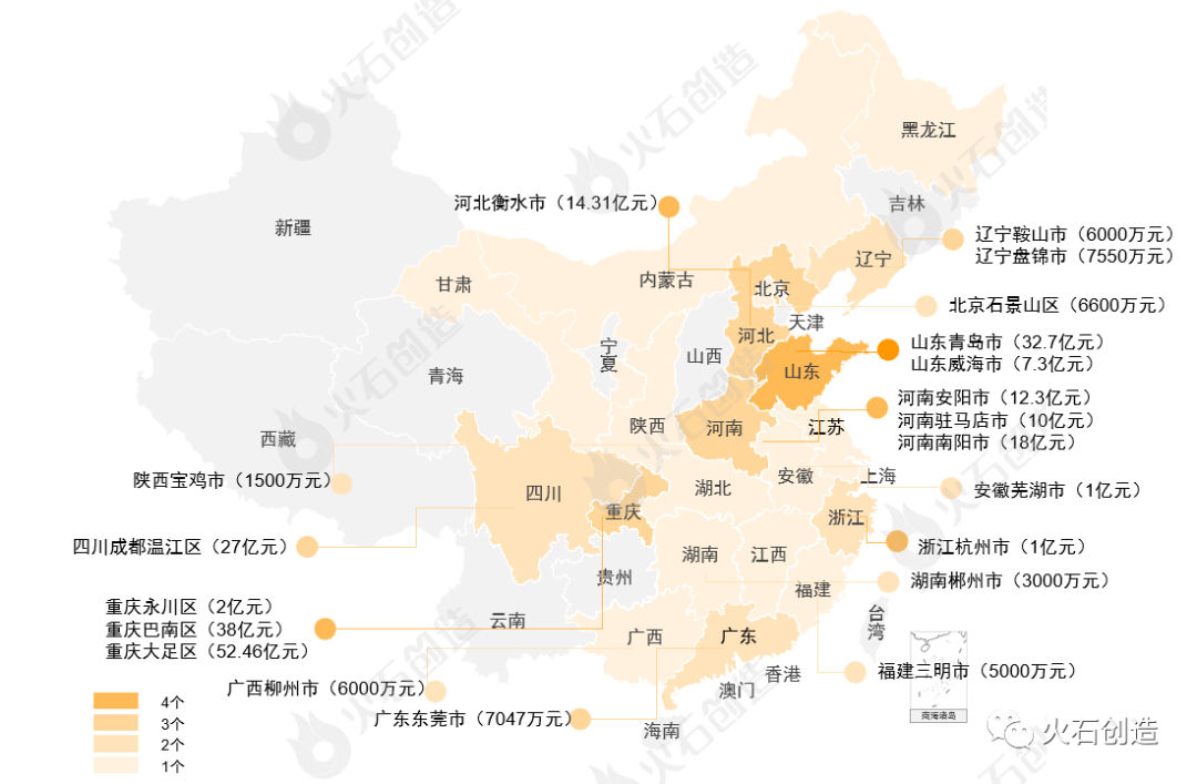 2017年9月,國(guó)家組織開展康復(fù)輔助器具產(chǎn)業(yè)綜合創(chuàng)新試點(diǎn),深圳市、嘉興市等12個(gè)地區(qū)成為首批試點(diǎn)區(qū)域,北京石景山區(qū)、上海青浦區(qū)、浙江杭州市等22個(gè)地區(qū)列入第二批試點(diǎn)區(qū)域,并提交國(guó)家綜合創(chuàng)新試點(diǎn)承諾書,將在2021-2023年持續(xù)加大資金投入以支持康復(fù)輔助器具產(chǎn)業(yè)發(fā)展。其中,河北省衡水市、浙江省杭州市、山東省青島市、河南省南陽(yáng)市、重慶市大足區(qū)等11個(gè)地區(qū)三年總計(jì)資金投入均超過億元,其中重慶市大足區(qū)累計(jì)投入高達(dá)52.46億元。