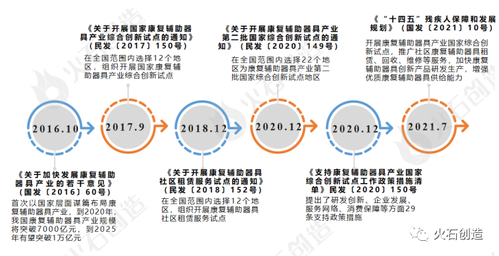 2016年10月,國(guó)務(wù)院發(fā)布《關(guān)于加快發(fā)展康復(fù)輔助器具產(chǎn)業(yè)的若干意見》(國(guó)發(fā)〔2016〕60號(hào)),首次以國(guó)家層面謀篇布局康復(fù)輔助器具產(chǎn)業(yè),提出增強(qiáng)自主創(chuàng)新能力、促進(jìn)產(chǎn)業(yè)優(yōu)化升級(jí)、擴(kuò)大市場(chǎng)有效供給、營(yíng)造良好市場(chǎng)環(huán)境四項(xiàng)主要任務(wù),統(tǒng)籌推進(jìn)康復(fù)輔助器具產(chǎn)業(yè)發(fā)展。