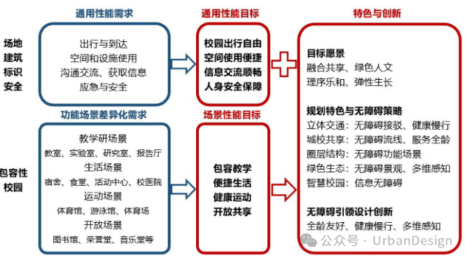 圖2 大學(xué)校園無(wú)障礙需求及性能目標(biāo)
