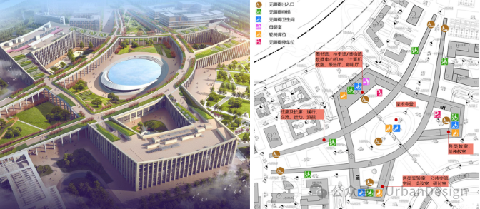 圖8 “創(chuàng)新核”鳥(niǎo)瞰圖及無(wú)障礙設(shè)施配置