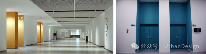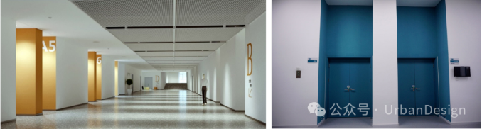 室內(nèi)通過(guò)色彩變化進(jìn)行功能分區(qū),標(biāo)識(shí)采用大字體和高對(duì)比度形式(圖 14)。