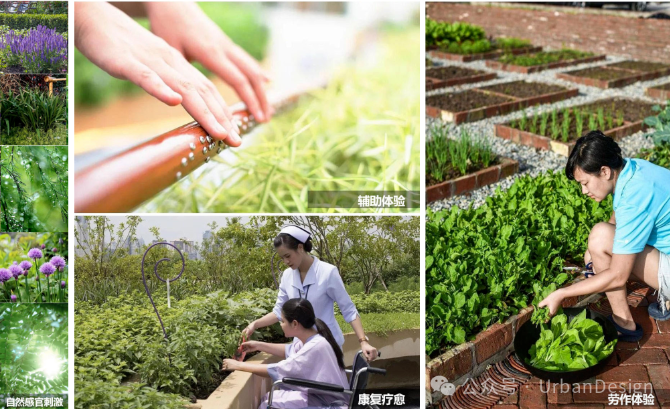 康復(fù)大學(xué)校園包容性設(shè)計(jì)中注重人的心理感受,充分發(fā)揮康復(fù)學(xué)科的特點(diǎn),利用康復(fù)醫(yī)學(xué)、康復(fù)景觀學(xué)等相關(guān)理論,借助場(chǎng)地、空間與陽(yáng)光、空氣、植物、土地的相互作用,采用園藝療法等療愈手段,利用植物栽培與園藝操作活動(dòng)幫助有需要人士從其社會(huì)、教育、心理以及身體諸方面進(jìn)行調(diào)整更新(圖 20)。