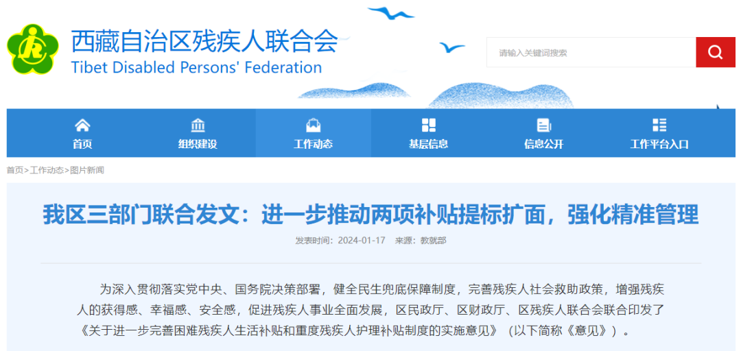 近期,西藏自治區(qū)民政廳、西藏自治區(qū)財政廳、西藏自治區(qū)殘疾人聯(lián)合會聯(lián)合印發(fā)了《關(guān)于進一步完善困難殘疾人生活補貼和重度殘疾人護理補貼制度的實施意見》。