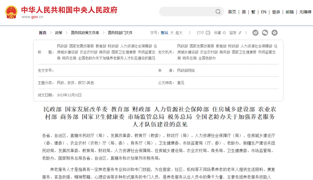 近日,民政部等12個(gè)部門制定出臺(tái)《關(guān)于加強(qiáng)養(yǎng)老服務(wù)人才隊(duì)伍建設(shè)的意見(jiàn)》(以下簡(jiǎn)稱“意見(jiàn)”),這是我國(guó)首個(gè)關(guān)于養(yǎng)老服務(wù)人才隊(duì)伍建設(shè)的綜合性政策文件。