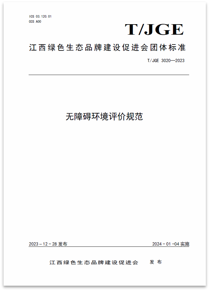 近期,《無(wú)障礙環(huán)境評(píng)價(jià)規(guī)范》(T/JGE 3020-2023)團(tuán)體標(biāo)準(zhǔn)正式發(fā)布,該標(biāo)準(zhǔn)由江西省質(zhì)標(biāo)院聯(lián)合撫州市殘疾人聯(lián)合會(huì)、中國(guó)船級(jí)社質(zhì)量認(rèn)證有限公司等單位共同參與起草。