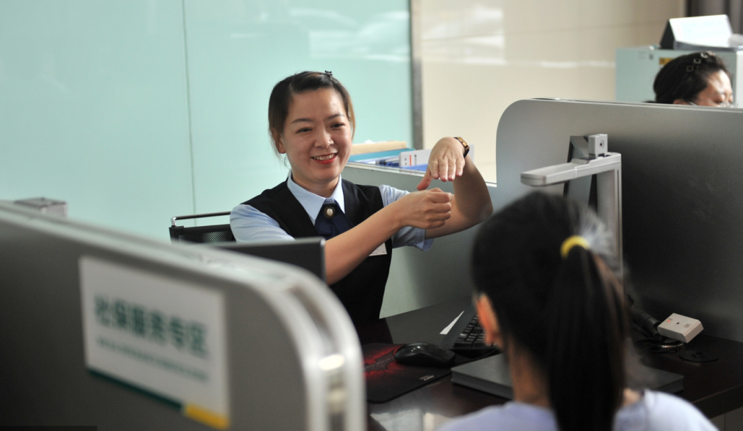 通過(guò)手語(yǔ)雙屏翻譯設(shè)備,聽障群眾只需按下“一鍵呼叫”,就可與手語(yǔ)老師進(jìn)行視頻交流,溝通表達(dá)自己的業(yè)務(wù)需求,窗口工作人員再與手語(yǔ)老師進(jìn)行交流,并將辦理結(jié)果通過(guò)手語(yǔ)老師告知聽障群眾,整個(gè)過(guò)程十分便捷。