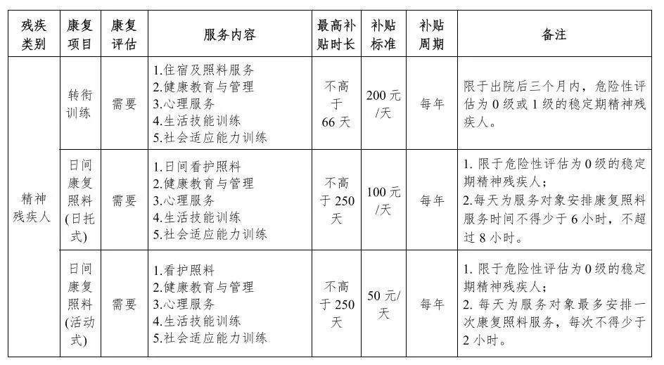 2、康復(fù)資助項目和標準一覽