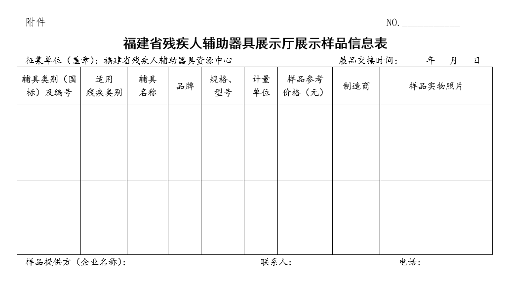 (一)請意向企業(yè)整理展品清單,詳細填寫《福建省殘疾人輔助器具展示廳展示樣品登記表》(附件)。
