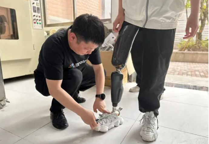 近日,在貴州省康復(fù)醫(yī)院“科技改變生活·輔具支撐夢想——優(yōu)秀殘疾人代表智能假肢裝配公益活動”現(xiàn)場,貴州省殘疾人游泳隊(duì)隊(duì)員陳潔在工作人員的幫助下穿上了新適配的智能仿生假肢,開始了適應(yīng)訓(xùn)練。據(jù)了解,本次公益活動是該醫(yī)院2023年度假肢矯形器裝配康復(fù)救助項(xiàng)目的一部分,計(jì)劃讓14位優(yōu)秀殘疾人通過適配智能仿生假肢,獲得更為強(qiáng)大的生活能力與職業(yè)潛能。