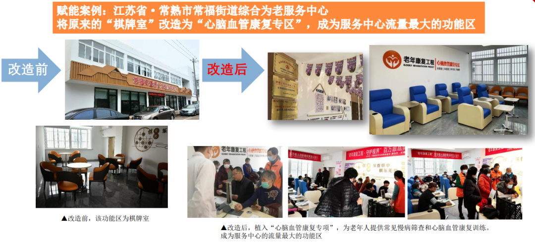 2.面向養(yǎng)老服務(wù)機(jī)構(gòu):幫助機(jī)構(gòu)引入康復(fù)工程,提升自身技術(shù)和品牌力;賦能康復(fù)項(xiàng)目模式和人才輸出;培育康復(fù)型養(yǎng)老服務(wù)機(jī)構(gòu),提高其服務(wù)能力和生存能力。