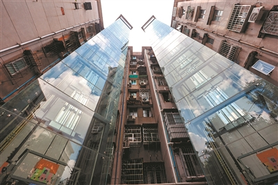 廣州黃花崗街道加裝電梯的樓宇。圖源:廣州日?qǐng)?bào)