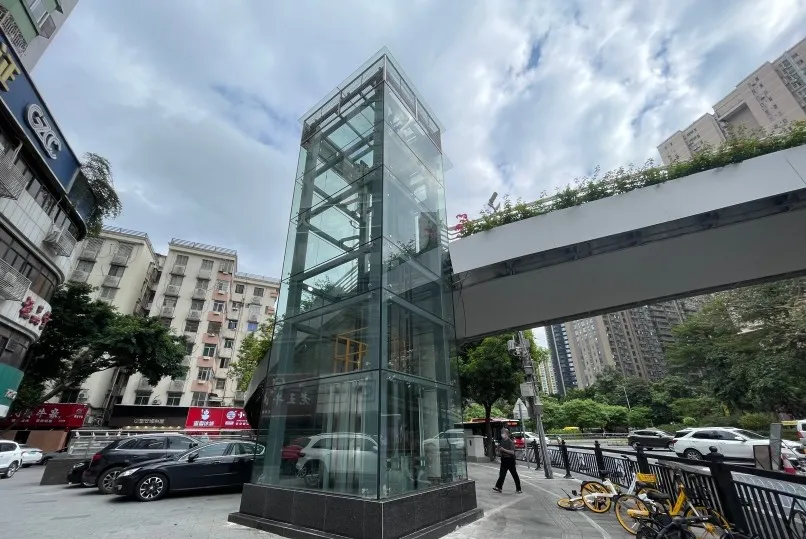 人行天橋配置無(wú)障礙電梯。圖源:廣州日?qǐng)?bào)
