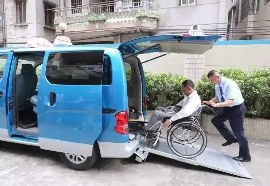 無(wú)障礙的士接送輪椅人士。圖源:輪易出行