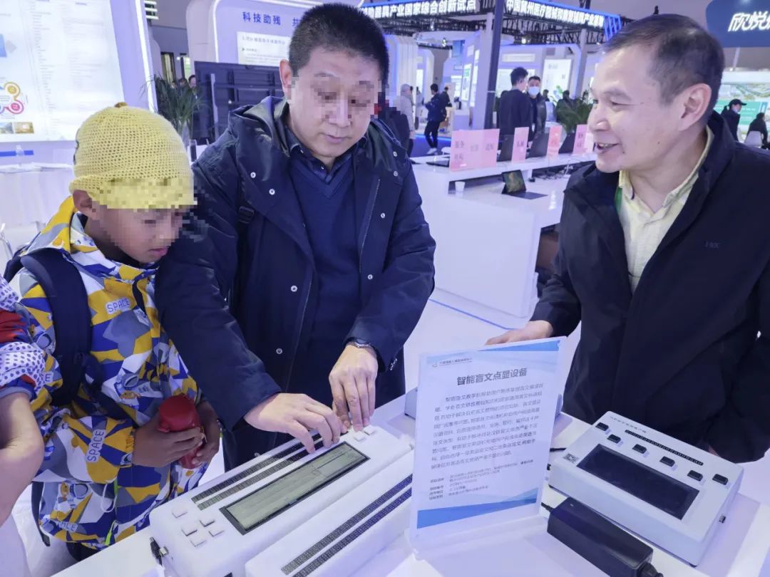 圖為智能盲文點(diǎn)顯設(shè)備展示體驗(yàn)