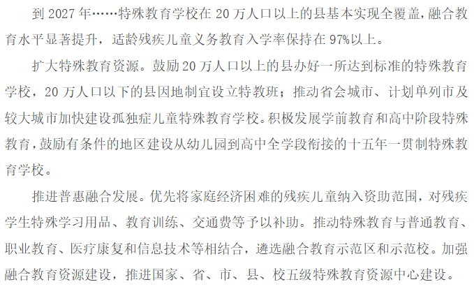 《意見(jiàn)》中提到諸多推動(dòng)基礎(chǔ)教育發(fā)展的計(jì)劃,其中與特殊教育相關(guān)的主要舉措如下:
