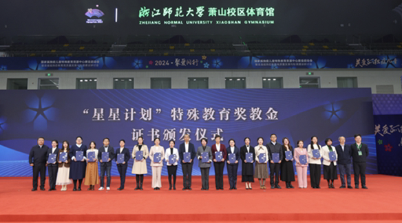 在上文提到的2024年12月11日于浙江師范大學(xué)舉辦的國(guó)家孤獨(dú)癥兒童特殊教育資源中心建設(shè)啟動(dòng)會(huì)上,“星星計(jì)劃”2024年度特殊教育獎(jiǎng)教金證書(shū)頒發(fā)儀式也共同舉行。