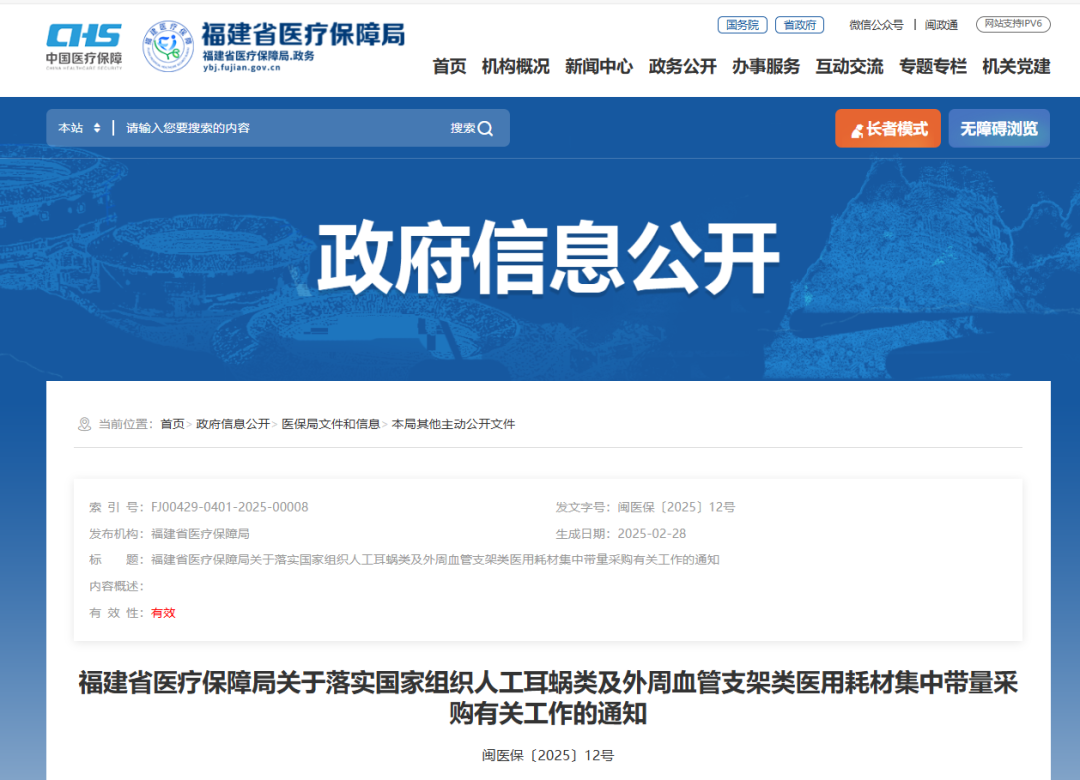 2月28日,福建醫(yī)保局發(fā)布《關(guān)于落實國家組織人工耳蝸類及外周血管支架類醫(yī)用耗材集中帶量采購有關(guān)工作的通知》,其中指出,人工耳蝸類中選結(jié)果于2025年3月7日在福建省醫(yī)療保障信息平臺藥品和醫(yī)用耗材招標和采購交易子系統(tǒng)掛網(wǎng),3月11日起正式執(zhí)行;外周血管支架類中選結(jié)果于5月12日在招采子系統(tǒng)掛網(wǎng),5月14日起正式執(zhí)行。