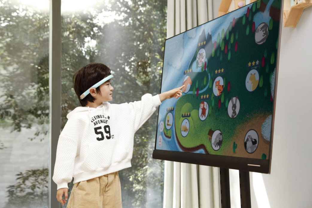 強(qiáng)腦科技研發(fā)的StarKids開星果腦機(jī)接口社交溝通訓(xùn)練系統(tǒng),其聚焦社交和語言障礙,通過捕捉兒童大腦中與社交相關(guān)的腦電信號(hào),并結(jié)合人工智能算法,進(jìn)行實(shí)時(shí)閉環(huán)反饋訓(xùn)練,以促進(jìn)患兒大腦神經(jīng)可塑性,由此提升兒童的認(rèn)知社交能力與邏輯思維能力。