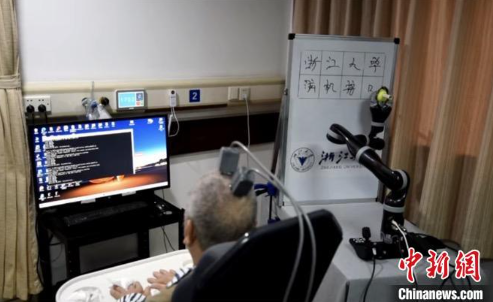 浙江大學(xué)腦機(jī)接口臨床轉(zhuǎn)化技術(shù)團(tuán)隊(duì)也通過腦機(jī)接口技術(shù)讓一位76歲高位截癱的老人實(shí)現(xiàn)了用意念寫字,實(shí)現(xiàn)了侵入式腦機(jī)接口腦控機(jī)械臂書寫漢字。