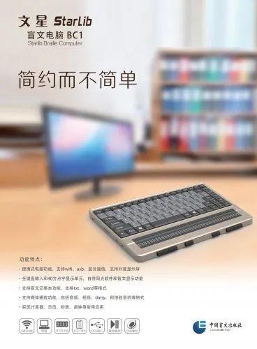 文星盲文電腦則搭配了點(diǎn)顯器,可以通過盲文觸點(diǎn)的自動(dòng)升降“顯示”40萬盲文點(diǎn)字,自帶陽光軟件和盲文顯示功能。同時(shí)該產(chǎn)品也支持媒體播放功能,包括音頻、視頻等格式,可幫助視障人士提高獲取文化服務(wù)的便利性。