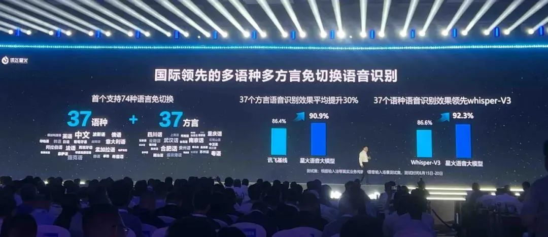 語音能力作為科大訊飛的領(lǐng)先優(yōu)勢,去年年初科大訊飛便在星火大模型V3.5的更新中,首次對外發(fā)布了星火語音大模型,對于37種主流語種的語音識別效果已超過OpenAI Whisper V3。在后續(xù)的星火大模型V4.0發(fā)布會上。除了之前已有的37個主流語種,還新增了37種方言,這代表著使用者可以多語種和方言隨意切換。