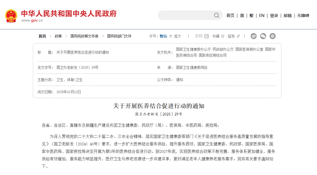 五部門發(fā)文:開展醫(yī)養(yǎng)結(jié)合促進(jìn)行動(dòng)