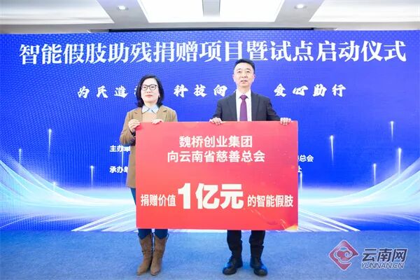 12月3日,“智能假肢助殘捐贈項目暨試點啟動儀式”在云南省康復輔具技術中心舉行。本次活動以“為民造福,科技向善,愛心助行”為主題。儀式上,魏橋創(chuàng)業(yè)集團向云南省慈善總會捐贈價值1億元的智能假肢,“守望工程?智能假肢助殘項目”同步啟動,預計將為全省2000名肢體殘疾群眾帶來生活新希望。