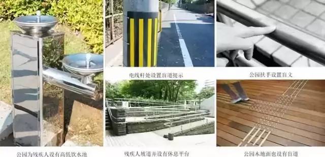 公園的無障礙設(shè)計重點(diǎn)在盲道、無障礙衛(wèi)生間、坡道、座椅、飲水池等。