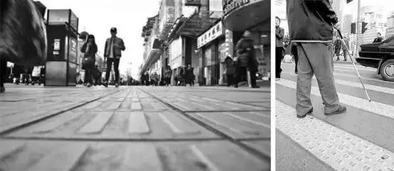 為視障者出行安全、方便,國家出資修建了可觸覺地面,包括條狀凸起和塊狀凸起兩種。