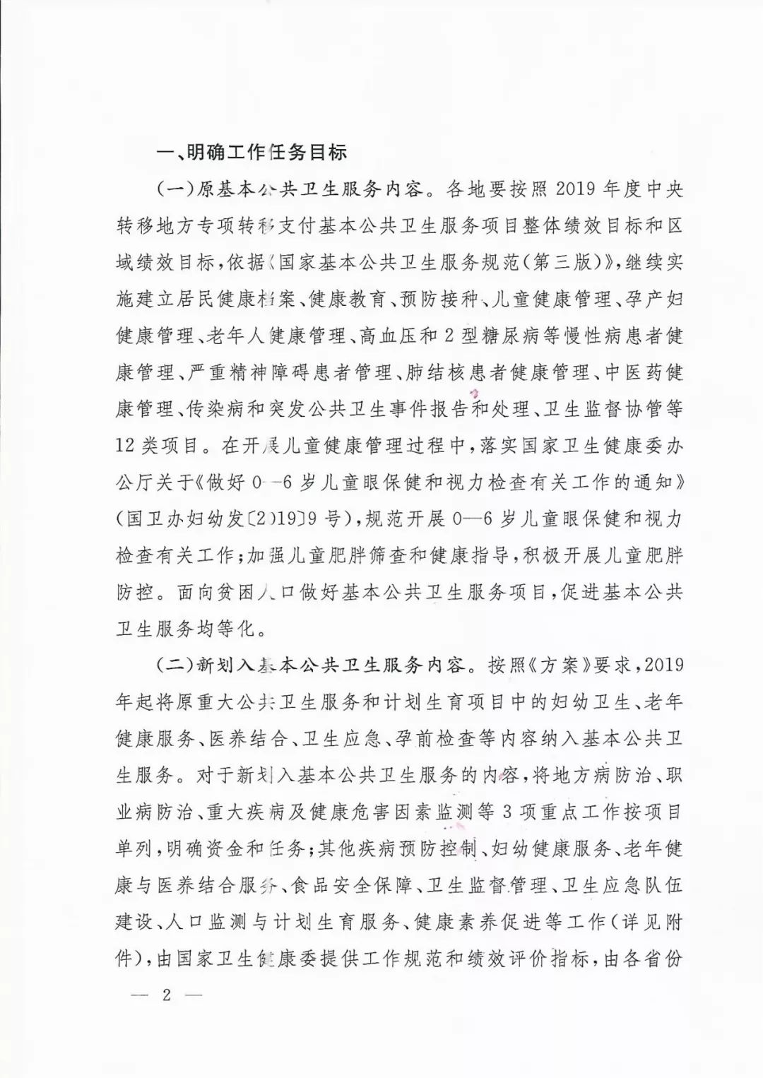 2019年起將原重大公共衛(wèi)生服務(wù)和計(jì)劃生育項(xiàng)目中的婦幼衛(wèi)生、 老年健康服務(wù) 、 醫(yī)養(yǎng)結(jié)合 、衛(wèi)生應(yīng)急、孕前檢查等內(nèi)容納入基本公共衛(wèi)生服務(wù)。