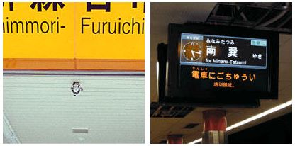 在各車輛乘降口上方設(shè)置了以4國語言顯示各種信息的顯示裝置,讓乘客更方便地了解電車的停車站點及換乘方法等信息。此外,不僅在車內(nèi)設(shè)置了隨著車門的開關(guān)響動的鈴聲,同時還正在推進引導(dǎo)鈴的設(shè)置。該引導(dǎo)鈴可通過聲音通知乘客打開的車門所在位置。