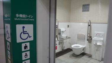 多功能洗手間除為輪椅使用者提供了方便的使用空間及設(shè)備外,還設(shè)置了嬰兒床與人工肛門用水洗裝置,供乘客更加便捷地使用車站洗手間。