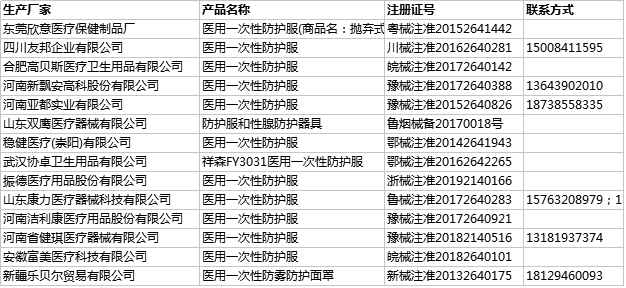 以下為口罩、防護服、消毒液等相關(guān)防護用品生產(chǎn)廠家信息匯總,供有需要的單位聯(lián)絡(luò)參考(*提醒:各采購單位和個人務(wù)必不要以非醫(yī)用口罩等替代,但凡未經(jīng)藥監(jiān)局系統(tǒng)批準(zhǔn)的產(chǎn)品,都不具備醫(yī)用資質(zhì)和效果。)