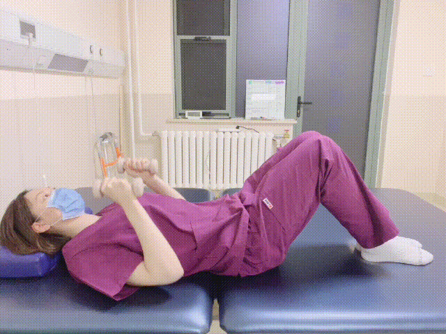 (注意保持側(cè)臥位,肩、臀、膝、踝在同一直線上,抬腿時臀部外側(cè)肌肉先發(fā)力)
