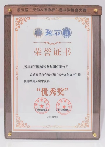 近日,由天津仲裁委員會與天津市律師協(xié)會聯(lián)合主辦的第五屆“天仲&律協(xié)杯”模擬仲裁庭大賽圓滿落幕,百利裝備集團(tuán)代表隊(duì)榮獲大賽“優(yōu)秀獎”。
